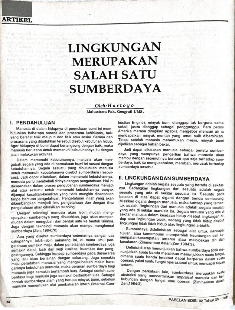 Oleh: Hartoyo Mahasiswa Fak. Geografi-UMS.