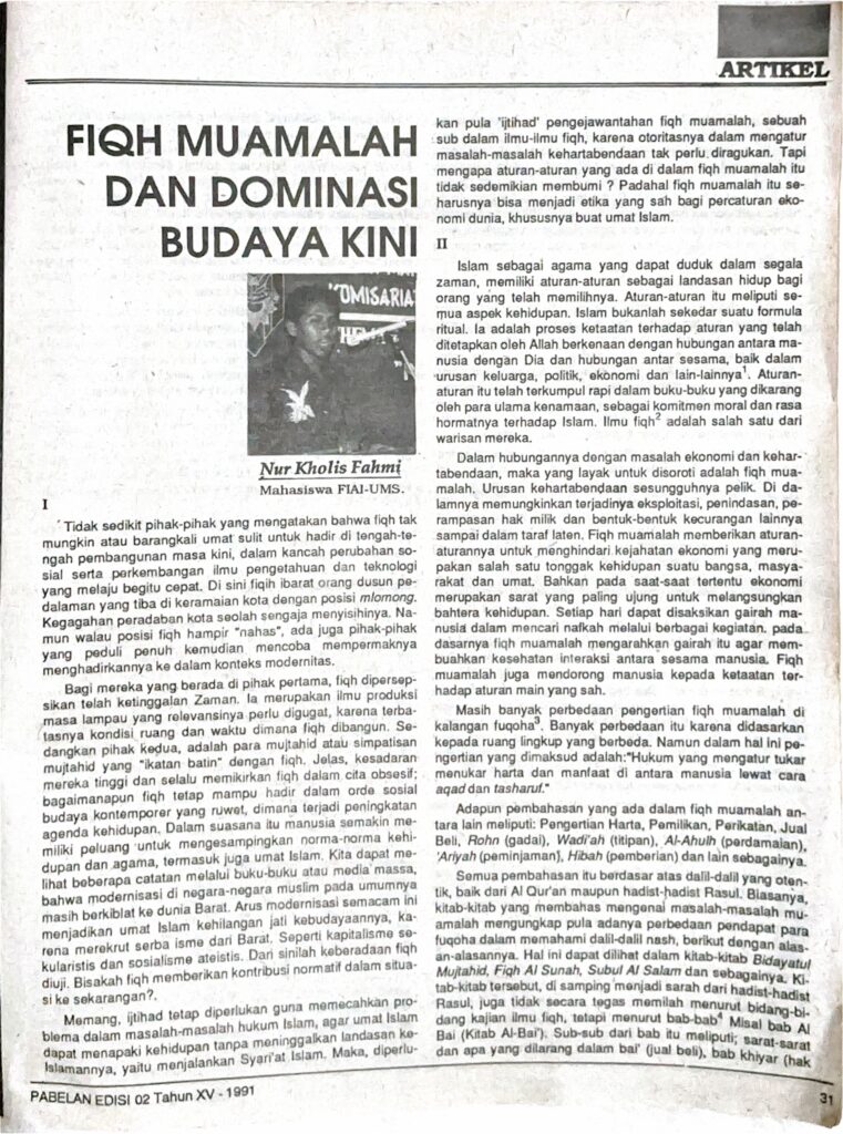 Nur Kholis Fahmi Mahasiswa FIAI-UMS.