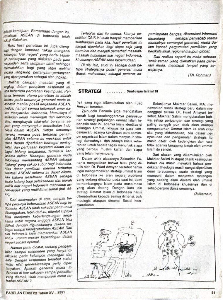 Begitu pula yang dilakukan oleh Centre for Strategic and International Studies (CSIS). Lembaga studi swasta ini mengadakan kegiatan penelitian lapangan tentang sikap generasi muda Indonesia terhadap ASEAN. Laporan ini merupakan hasil penelitian eksploratif, berdasarkan data-data yang terkumpul melalui penelitian lapangan yang dilaksanakan antara tanggal 5 dan 15 Oktober 1988.